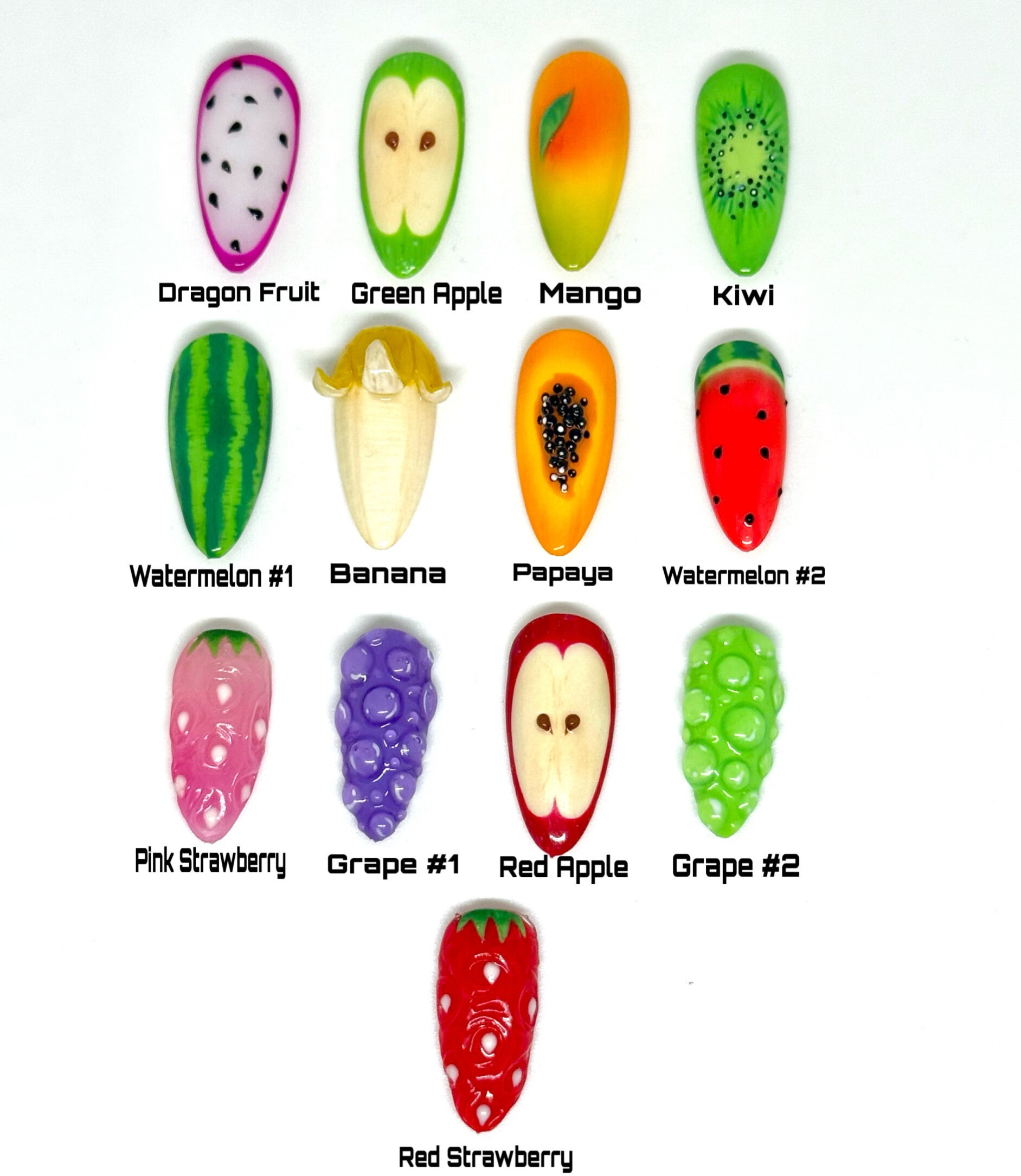 In this area please type the desired nails that you would like in your set! Up to 10 different fruits can be included. To receive the standard set please type “n/a” or “standard”.